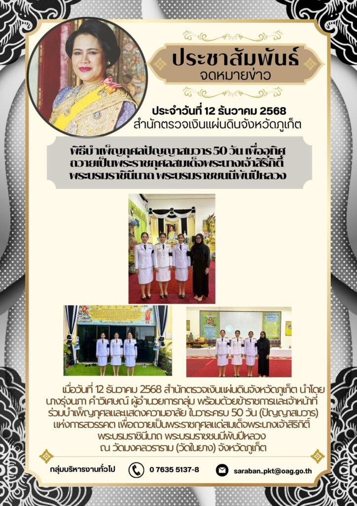 พิธีบำเพ็ญกุศลปัญญาสมวาร ๕๐ วัน เพื่ออุทิศถวายเป็นพระราชกุศลสมเด็จพระนางเจ้าสิริกิติ์ พระบรมราชินีนาถ พระบรมราชชนนีพันปีหลวงงานราชพิธี/รัฐพิธีธันวาคม 18, 2025ธันวาคม 18, 2025 Post Views: 85
